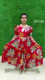Floral Puff-Sleeve Maternity Maxi Gown – SR1346